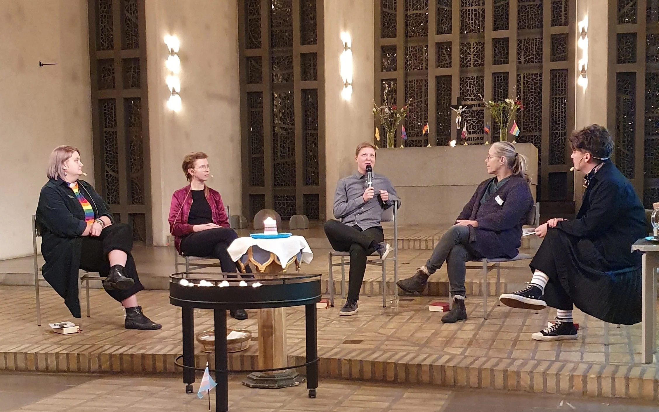 Jag pratar i en panel under Transgender day of Remembrance i Uppenbarelsekyrkan, Stockholm, nov 2022.
